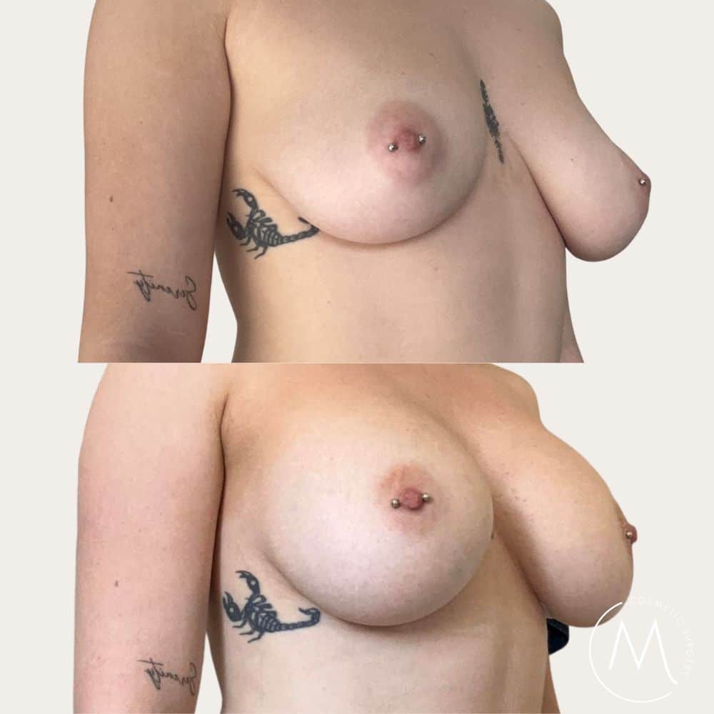 Implant Details: 325cc, Smooth, Round, Moderate Plus Profile placed over the muscle