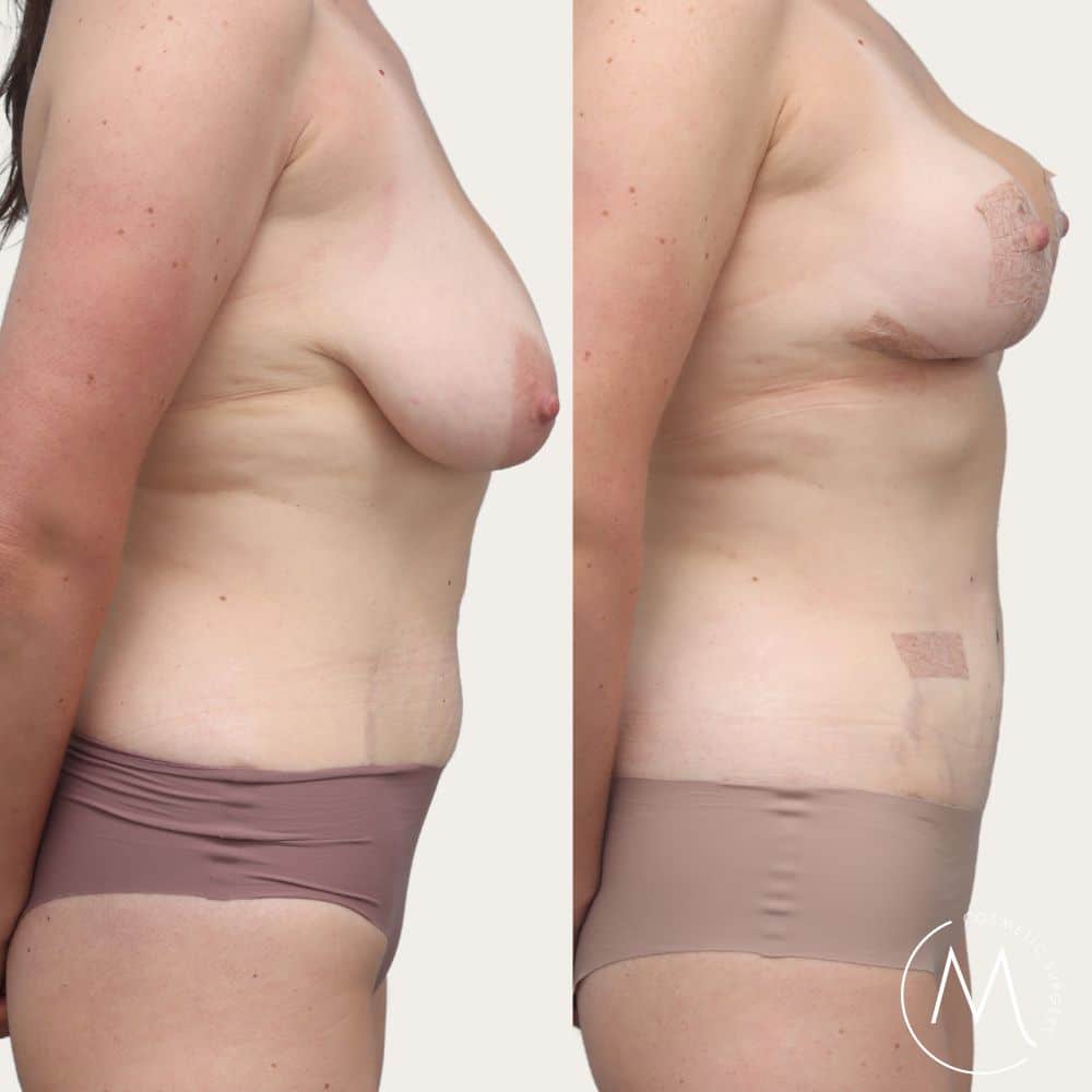 Full Abdominoplasty with rectus plication, liposuction of abdomen / hips plus breast lift mastopexy