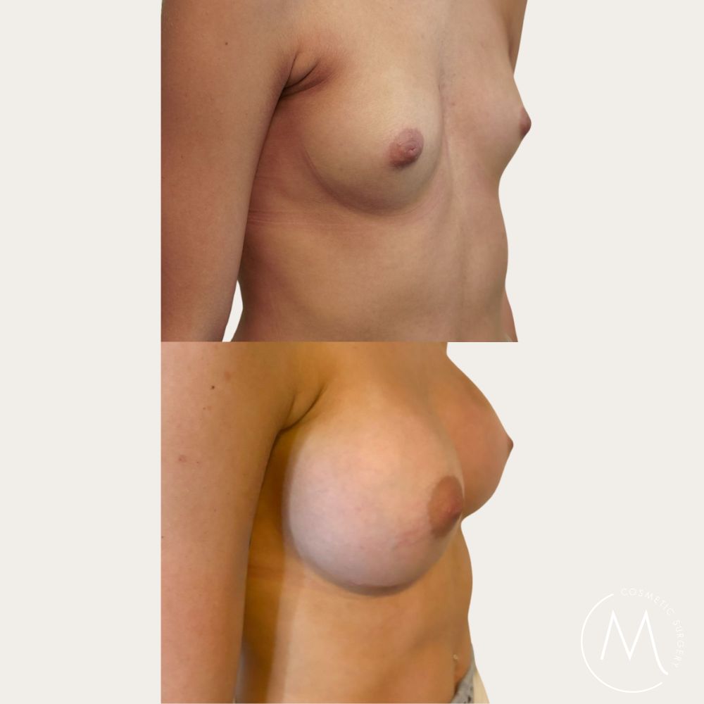 Implant details: 300cc, Smooth, Round, High Profile with dual plane placement