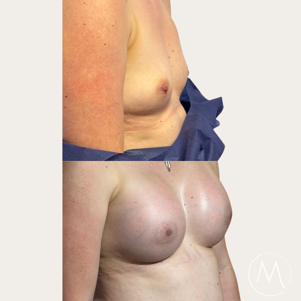 • Implant details: 590cc, Smooth, Round placed with dual plane placement